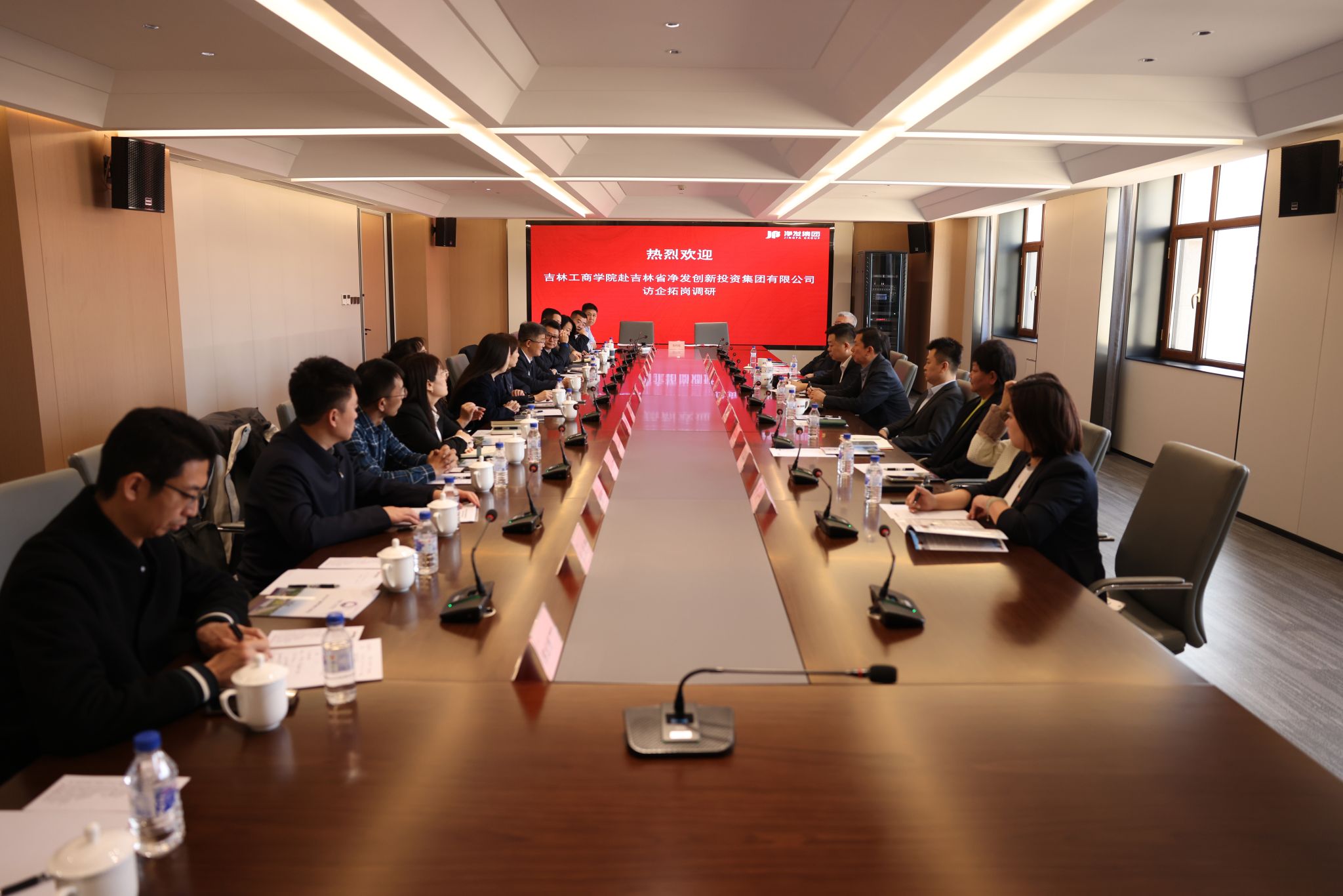 为深入贯彻落实省委省政府关于高校毕业生就业工作部署,扎实推进“访企拓岗促就业”专项行动,深化产教融合、校企合作,3月24日,学校党委副书记、校长李宝永率队赴吉林省净发创新投资集团有限公司走访调研,精准对接企业人才需求,共谋校地协同发展新篇章。净发集团党委书记、董事长杜峥平,党委副书记高军,副总经理刘晓慧及相关负责人热情接待并出席座谈。学校就业工作处、教务处、科研处及相关教学学院负责人参加活动。